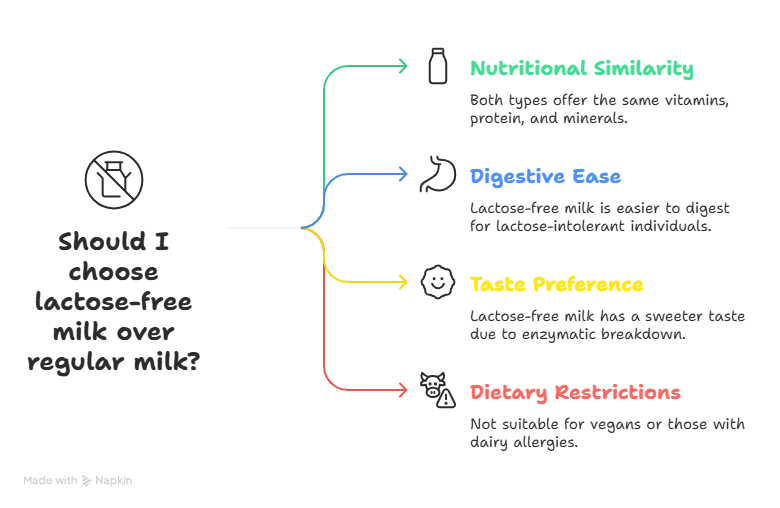 - If you’re dairy-free, allergic, or vegan → Lactose-free milk still isn’t for you. Look to plant-based alternatives.